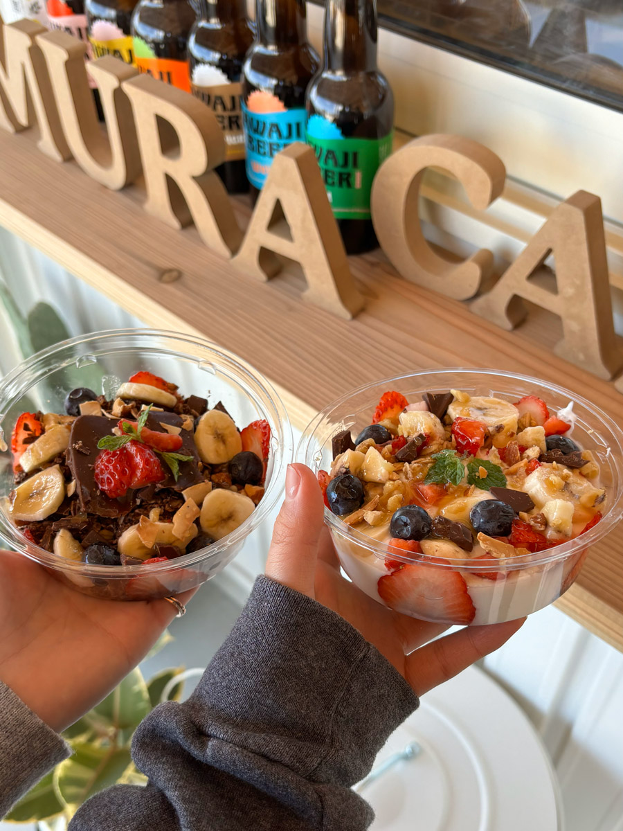 MURA.カフェ ハワイアンスイーツを中心としたカフェ可愛いスイーツと深煎りコーヒーで至福のひと時をご堪能下さい。 まるでハワイ!?淡路島で異国のスイーツを いちごマラトッツオとラムブレンドコーヒー 1階はハワイアンスイーツを中心としたカフェとなっていてモーニングのご利用もできます。ハワイのご当地スイーツである「マラサダ」と「マリトッツオ」を掛け合わせた『マラトッツオ』は、かわいらしい見た目で人気の商品。中に入っているのは「淡路島の匠牛乳」を使用したヨーグルトクリームです。さっぱりとした爽やかな甘さとなっていて、淡路島産のイチゴとの相性も抜群です。ドリンクメニューは、コーヒー、ティー、ジュースなど10種類以上がラインアップ。すべてテイクアウトが可能です。【営業時間】7:30~18:00(不定休)※休業日はInstagramにてご確認ください。 MURA.食堂はこちら スーパーフード「アサイー」 ハワイで人気のアサイーボール スーパーフードとよばれる「アサイー」をたっぷり使った「アサイーボール」はハワイで人気のメニュー。同店では『プレーン』、『ヨーグルト』、『チョコレート』の3種類をご準備しております。ドリンクメニューは、コーヒー、ティー、ジュースなど10種類以上がラインアップ。すべてテイクアウトが可能です。【営業時間】7:30~18:00(不定休)※休業日はInstagramにてご確認ください。 MURA.食堂はこちら アクセス 〒656-1602兵庫県淡路市育波16-2TEL:0799-84-0500 01 車 北淡ICから約3分 02 バス 北淡IC(バス)駅から徒歩約15分 03 自転車 道の駅「あわじ」から約50分(15km) 経路を確認する
